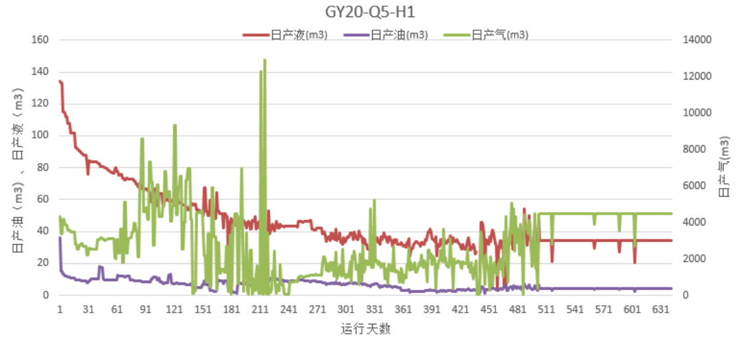 现场试验数据表明,该机组在产液量134.3m³/d~20.4m³/d大幅波动的工况下仍保持稳定运行;在吸入口含气率高达75.9%的极端条件下,机组性能未受显著影响。截至目前,该宽幅混流泵机组累计产油4115吨,充分验证了自研宽幅混流泵在复杂页岩油开采环境中的可靠性和稳定性,为页岩油压后排采装备的国产化奠定了坚实基础。